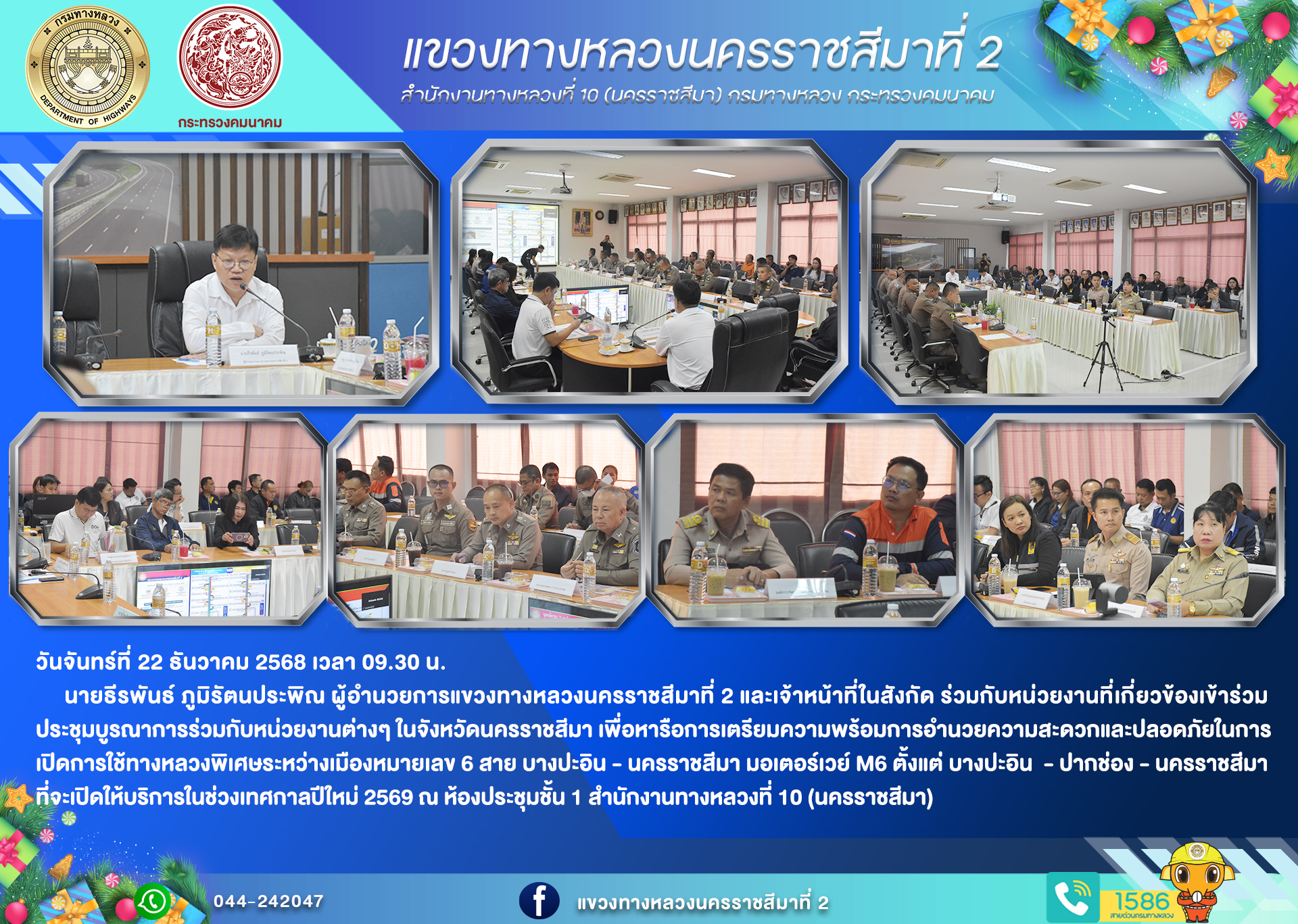 การประชุมบูรณาการร่วมกับหน่วยงานต่างๆ ในจังหวัดนครราชสีมา เพื่อหารือการเตรียมความพร้อมการอำนวยความสะดวกและปลอดภัยในการเปิดการใช้ทางหลวงพิเศษระหว่างเมืองหมายเลข 6 Read more ...