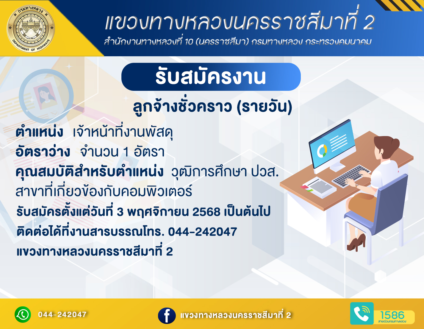 ประชาสัมพันธ์เบี่ยงช่องจราจรแยกนครราชสีมา วันศุกร์ที่ 26 กันยายน 2568 ถึงวันอังคารที่ 30 กันยายน 2568 Read more ...