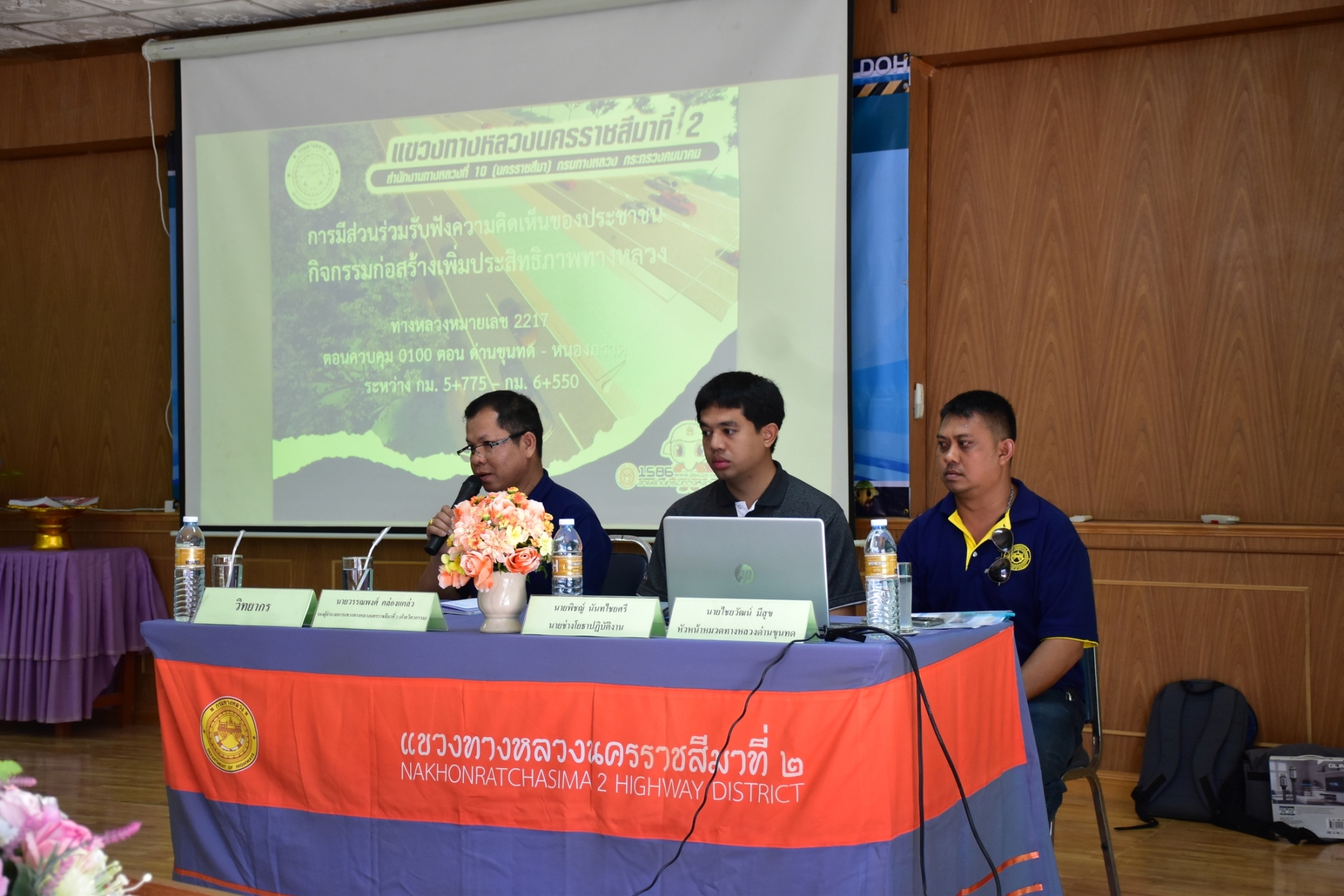 ได้ดำเนินการจัดประชุมการมีส่วนร่วมรับฟังความคิดเห็นของประชาชน โครงการก่อสร้างโครงข่ายทางหลวงแผ่นดินกิจกรรมก่อสร้างทางหลวงพัฒนาพื้นที่ระดับภาค งานก่อสร้างทางหลวงพัฒนาพื้นที่ระดับภาค ทางหลวงหมายเลข 2217 ตอนควบคุม 0100 ตอน ด่านขุนทด – หนองกราด ระหว่าง กม.5+775 - กม.6+550 ณ ห้องประชุมโรงเรียนบ้านถนนหักใหญ่ ตำบลกุดพิมาน อำเภอด่านขุนทด จังหวัดนครราชสีมา โดยมีนายธีรพันธ์ ภูมิรัตนประพิณ ผู้อำนวยการแขวงทางหลวงนครราชสีมาที่ 2 เป็นประธานในการประชุม